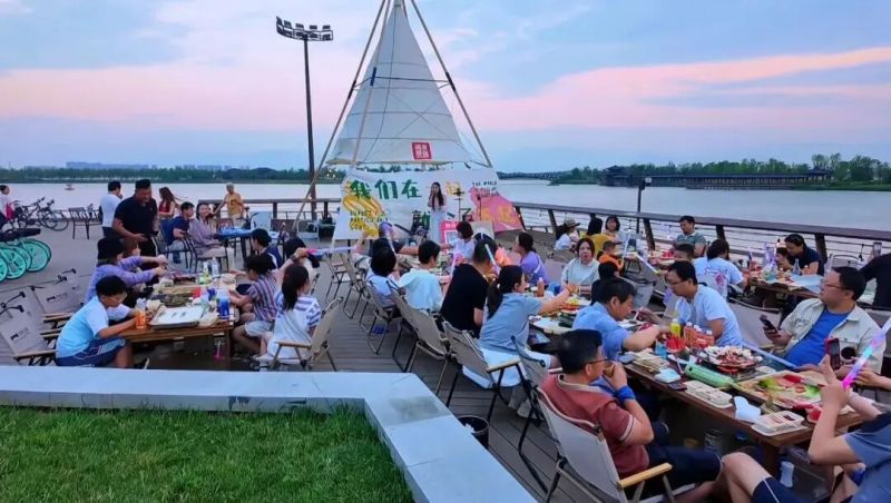 放松指南:湖边草地超适合露营,若想体验露营烧烤,芳信码头是绝佳选择,一边品尝美食一边欣赏湖景,烟火气十足。
