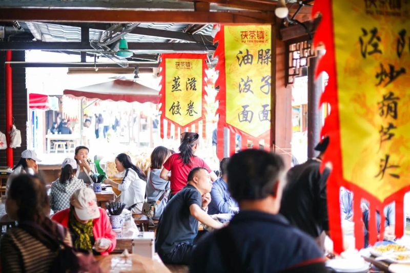 休闲必打卡:小镇汇聚多家特色茶馆,找一间闲坐,点一壶茯茶搭配茶点,看“金花”在杯中缓缓绽放;抬头是瓦檐漏下的阳光,低头能看见孩子喂小鱼、追鸽子,悠闲又自在。