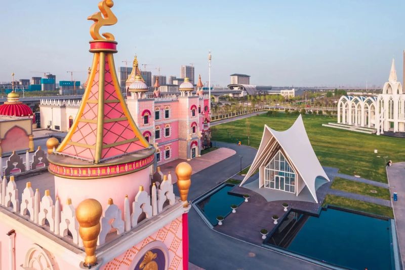 出片圣地:北门“荣耀罗马”片区的粉色城堡、仪式堂、爱之塔,白天拍摄满是童话感,傍晚蓝调时刻拍摄,氛围感满星。
