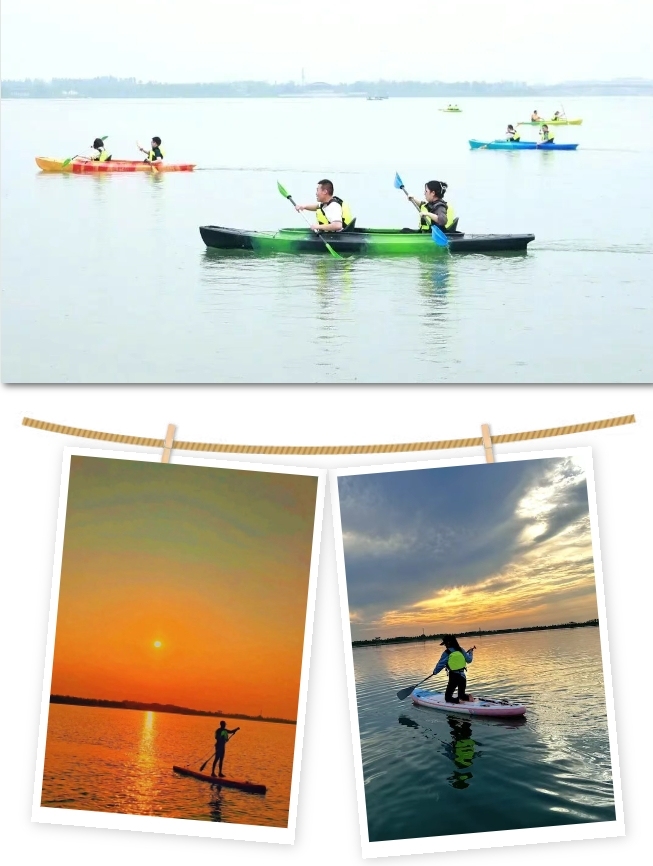 要是想换种方式亲近湖水,水上运动千万别错过。弘健水上运动休闲中心里,新手也能轻松上手皮划艇,跟着教练学会握桨、转向,就能在湖面悠然前行;桨板玩法更丰富,跪姿稳进、站立驰骋都可以,在波光粼粼间感受平衡与力量的乐趣;想体验团队协作,龙舟竞渡再合适不过,12人或6人组队,既能感受速度与激情,又能收获并肩作战的快乐。