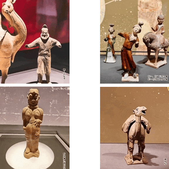 胡人牵驼俑扬起缰绳踏丝路征途,三彩女俑轻挥衣袖尽显盛唐温婉,杨全节鱼符跳跃间尽显灵动,彩绘陶镇墓武士俑踏着乐点舞动,陶骆驼昂首嘶鸣再现丝路辉煌,十二生肖俑依次亮相送吉祥,釉陶鞍马踏步前行尽显豪迈,盛唐繁华感直接溢出屏幕。