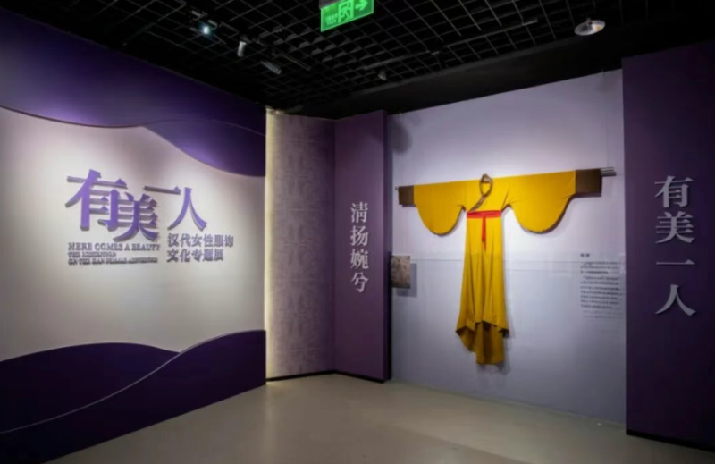 在汉景帝阳陵博物院,“有美一人——汉代女性服饰文化专题展”正在热展。展厅内,一束灯光照亮玻璃展柜中的汉代陶俑,素色衣装的细密纹路清晰可见;旁边展柜里的朱红汉服垂着柔软褶皱,裙摆金边在侧光下勾勒出暖亮轮廓;右侧展台的青瓷器物泛着温润柔光,墙面投影中的汉代生活图景与静默文物隔玻璃遥相对映,生动再现了汉代风貌。