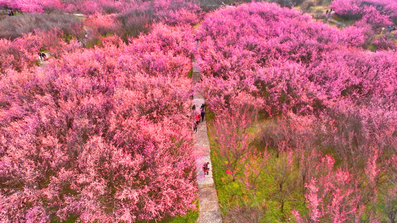 穿汉服在花下煮茶,复刻古人的雅致情趣,让春日时光慢慢流淌;也可随意漫步梅林,在繁茂梅花的映衬下打卡拍照,定格美好瞬间;还能登高远眺或航拍梅园全景,沉浸式感受大片花海带来的视觉震撼。