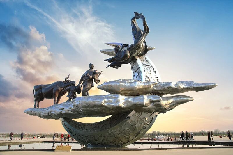 鹊桥仙雕塑:定格牛郎织女相见的浪漫瞬间,解锁诗与神话的完美交融,随手一拍都是氛围感大片。