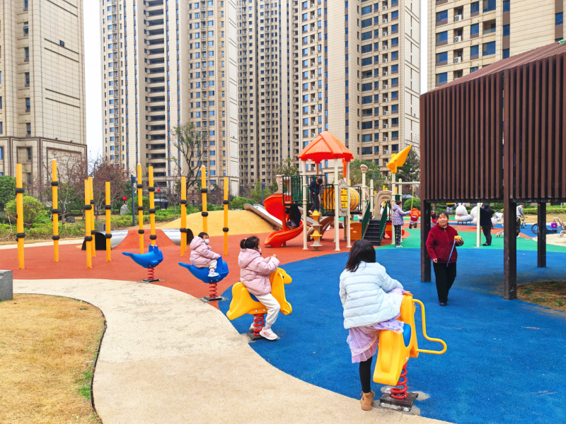 今年1月,小区健身器材正式“上新”,共新增7个品类并分两处科学布设:21号楼旁重点安装扭腰器、引体牵引组合器、腰背按摩器、太空漫步机等成人健身器材,精准贴合老年人健身需求;原有儿童活动中心则补充了儿童健身组合器材、摇摇乐等设施,实现全龄段健身覆盖。