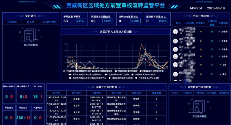 西咸新区的区域处方审核流转监管中心于2023年开始试点建设,通过信息化手段对全区处方进行审核和流转。患者在基层医疗机构就诊时,医生开具的处方会先经过系统自动审核,合规处方自动通过,存疑处方则转至药师进行人工审核。审核通过的处方可以流转到患者选定的药店,患者通过手机APP或小程序就能完成购药和医保结算,非常方便。
