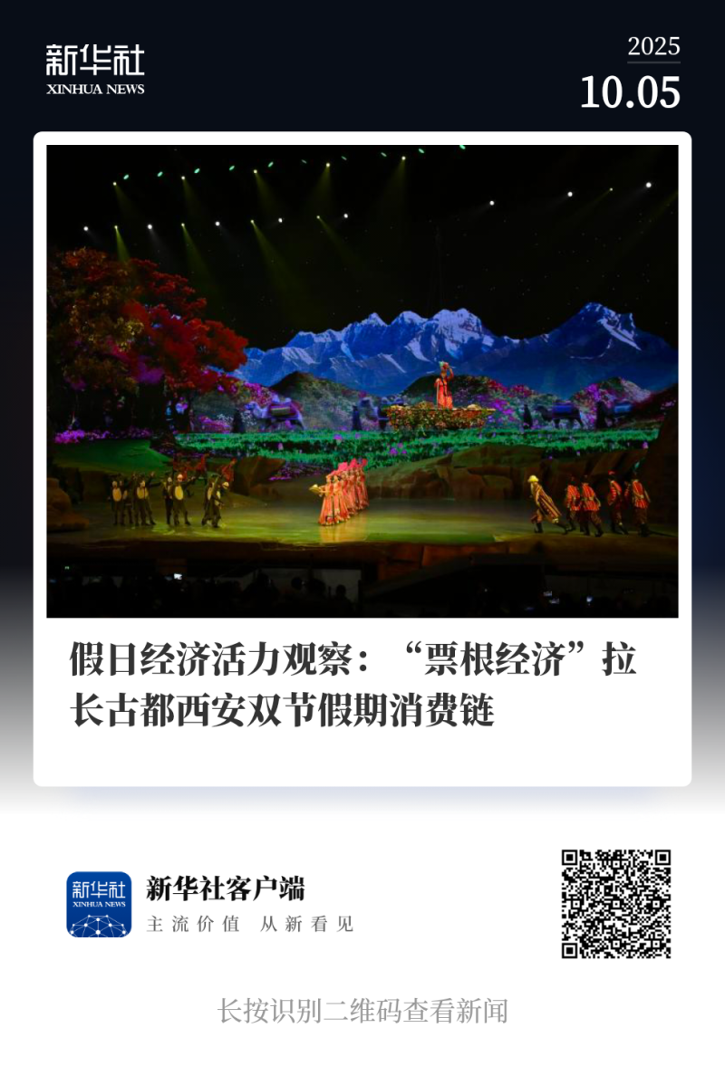 10月5日,新华社在《假日经济活力观察:“票根经济”拉长古都西安双节假期消费链》中,将目光对准诗经里小镇的“诗意消费”。报道景区策划的“诗会长安”文化活动月为游客提供沉浸式的传统文化体验,游客可与NPC对诗答题,汉服游客还能凭“银票”挑文创、体验非遗,享受“以诗换物”的雅趣。